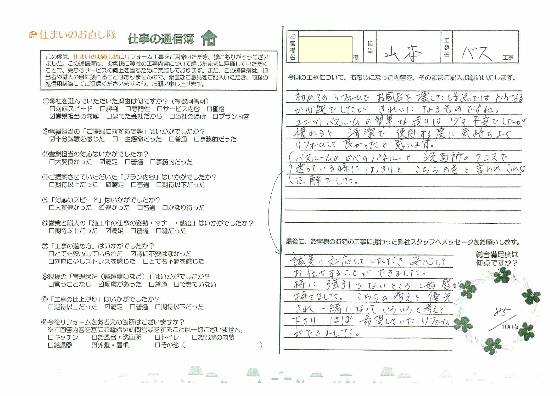 この度は、バスリフォームをして頂きましてありがとうございました。