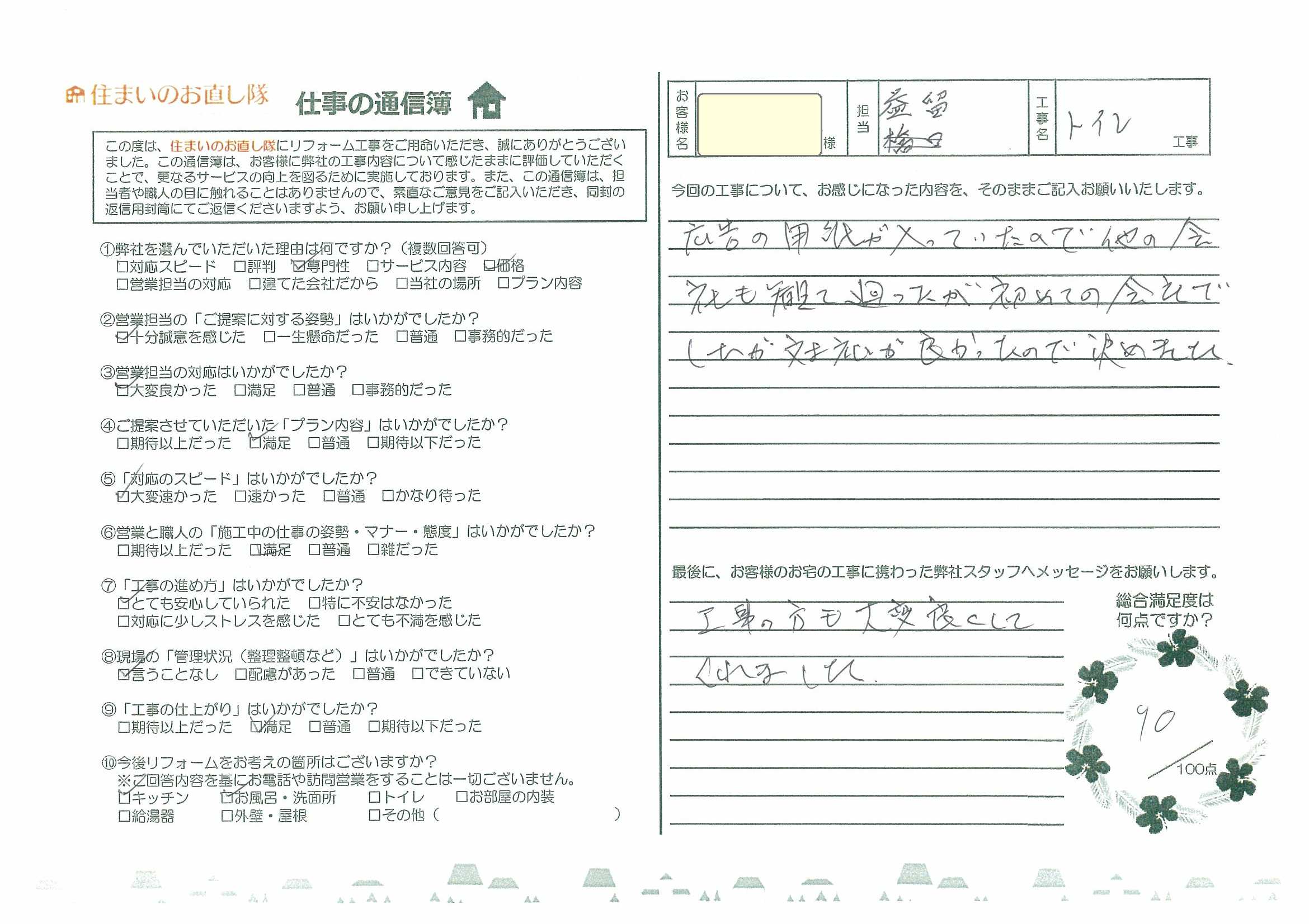 この度は当社のリフォームをご利用いただきありがとうございました。