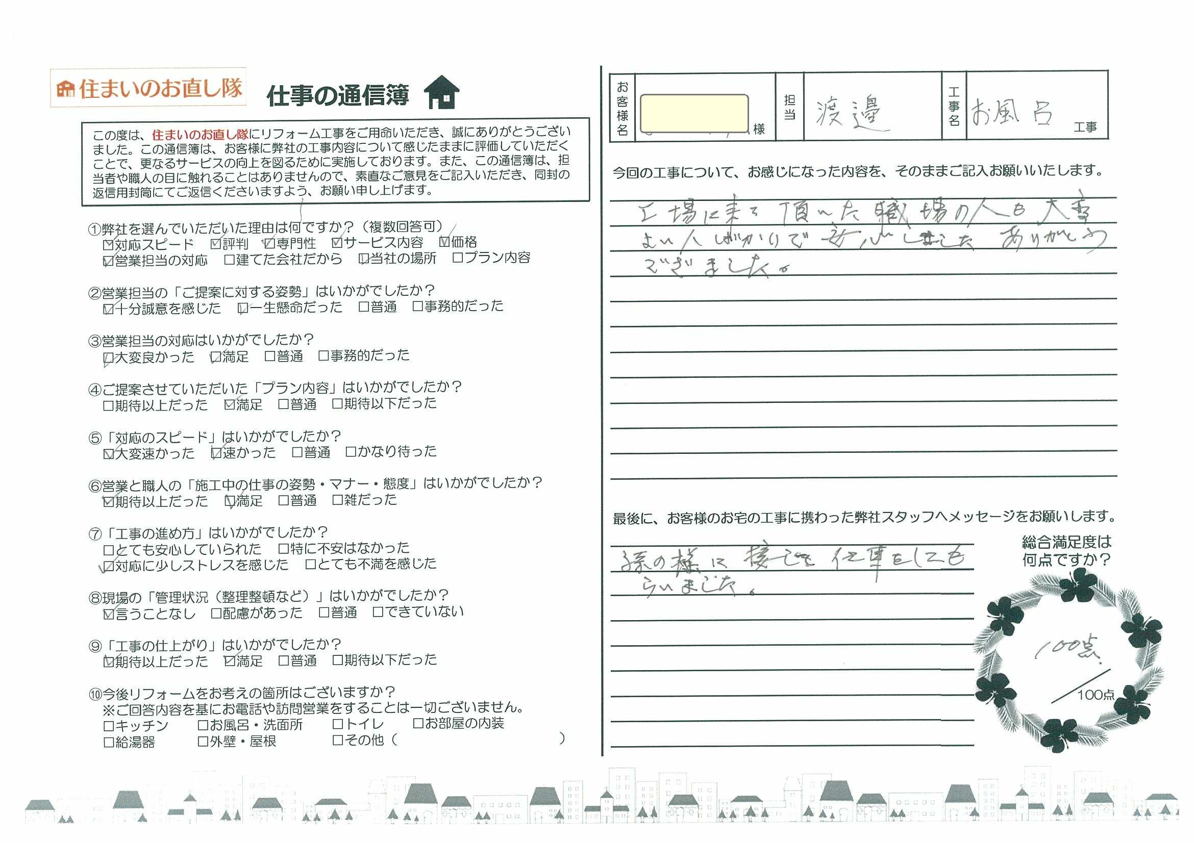 この度は、「住まいのお直し隊」のリフォームをご利用いただき誠にありがとうございます。