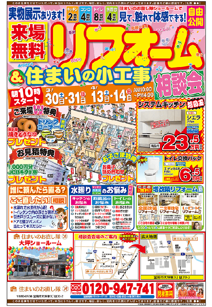 店長お客様がお困りのことなら何でも解決できるように努力します。 お住いにご不便をお感じのお客様は、一度お電話下さい! 当店自慢のリフォームをはじめ、暮らしの「困った!」をワンストップでお受けいたします。