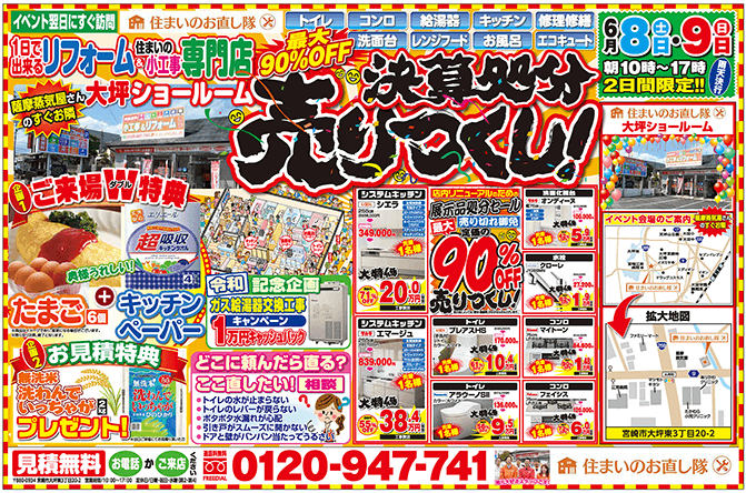 店長お客様がお困りのことなら何でも解決できるように努力します。 お住いにご不便をお感じのお客様は、一度お電話下さい! 当店自慢のリフォームをはじめ、暮らしの「困った!」をワンストップでお受けいたします。