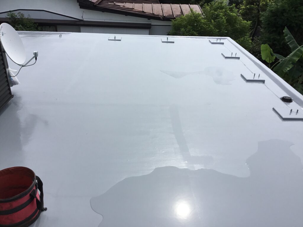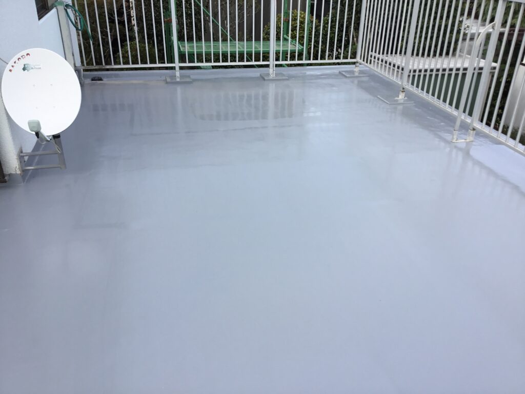 屋上のベランダのFRP防水塗料が経年劣化しておりました。