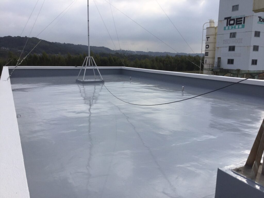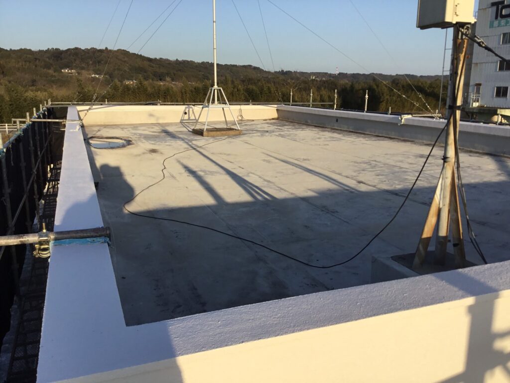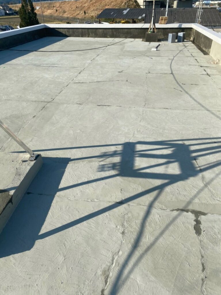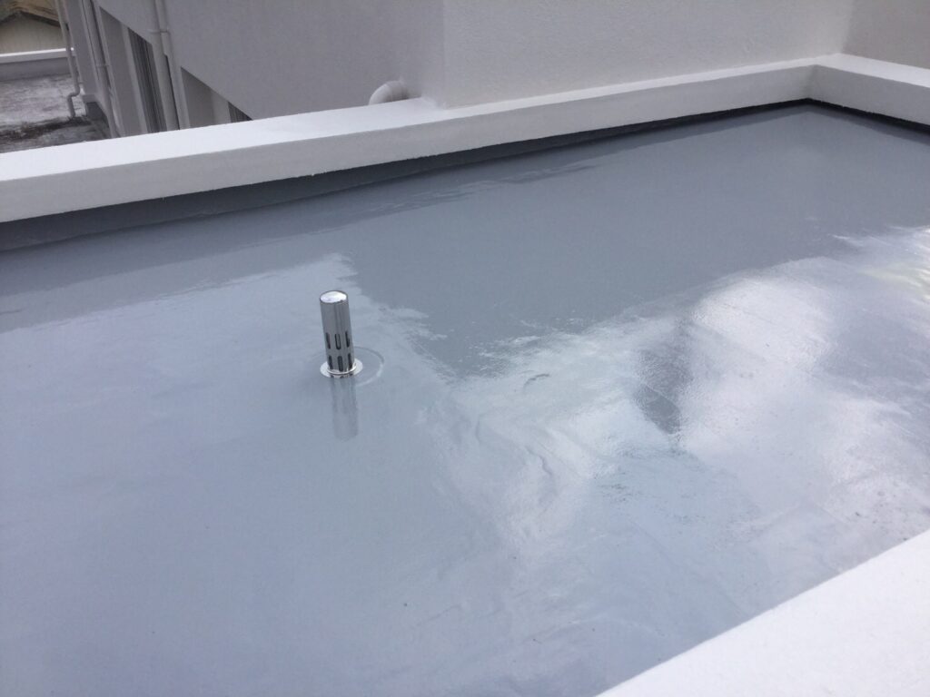 既存の防水シートを剥ぎ、ひび割れ箇所へコーキング打ち、メッシュ防水シートを貼り、