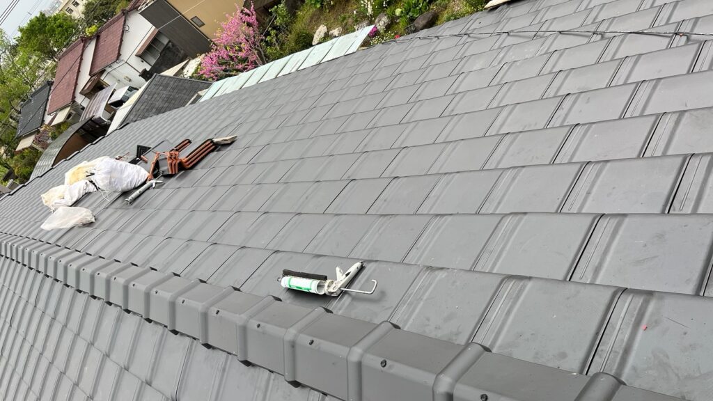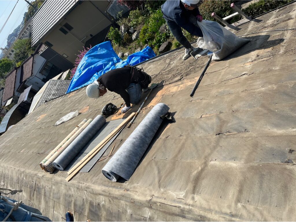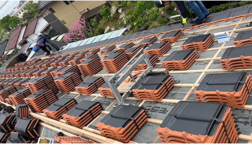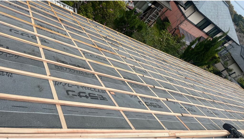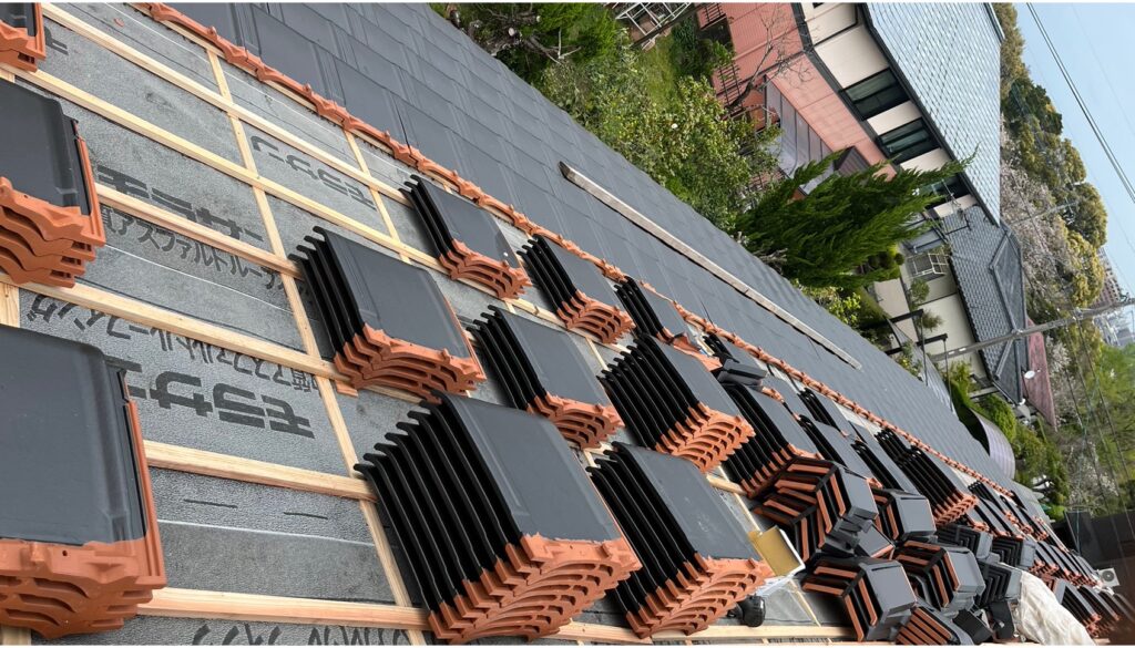 既存の瓦を取外し、雨漏り箇所を補修し、新しい瓦に取り替えました。
