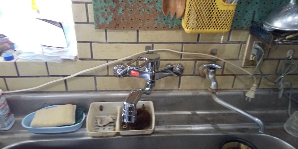 キッチンの水栓は、水漏れがしておりリクシル製の水栓金具に取替を行いました。