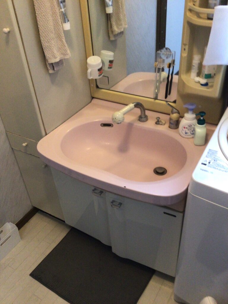 洗面化粧台交換工事 「洗面化粧台を入れ替えました」