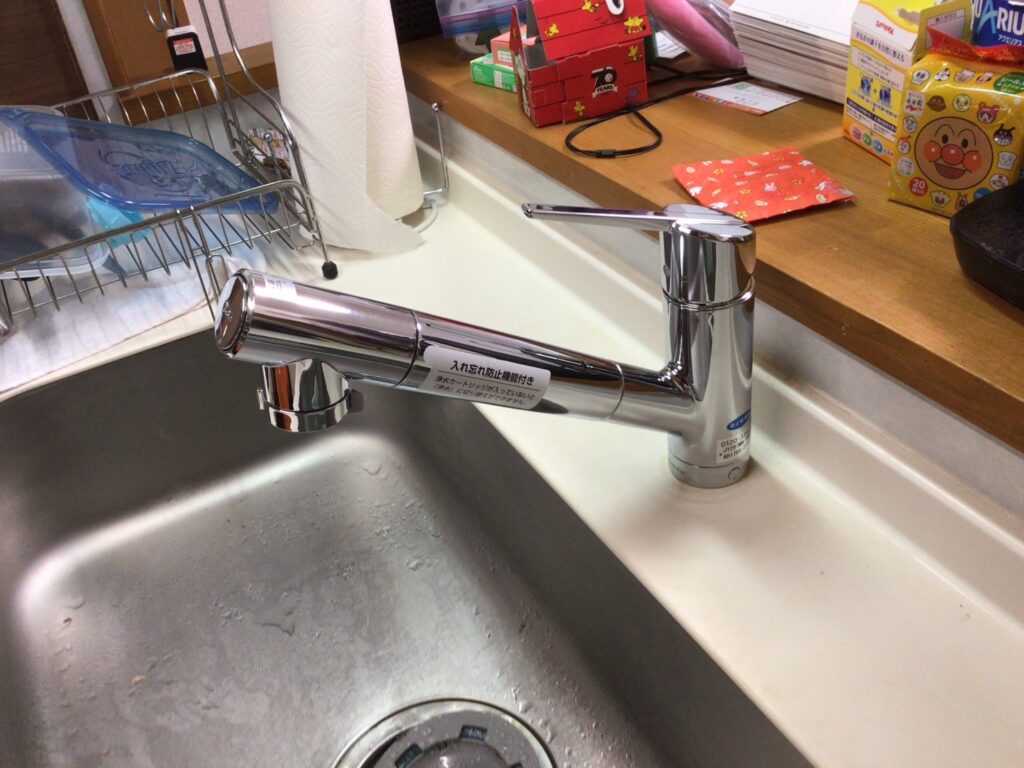 キッチン水栓交換工事 「浄水器一体型の水栓です」
