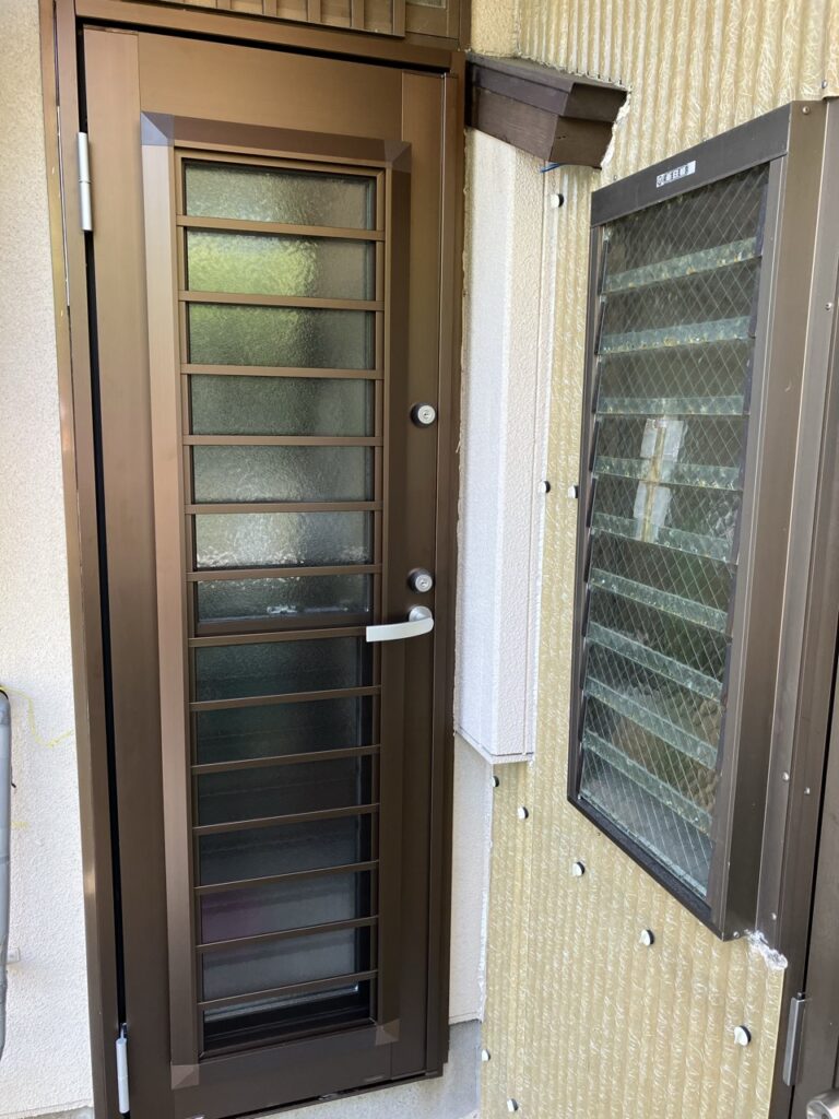 通風ドアタイプのYKK製の勝手口ドアリモをご提案、取替をさせて頂きました。