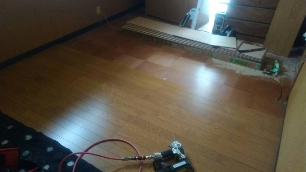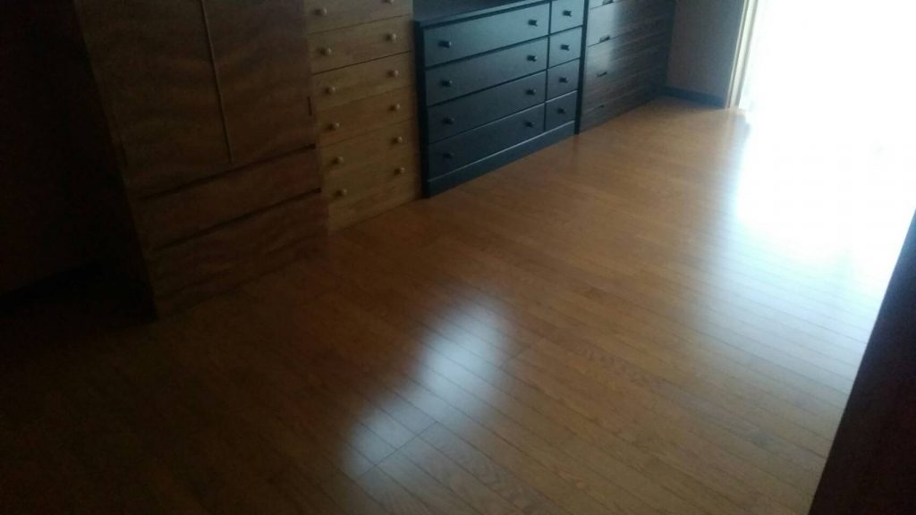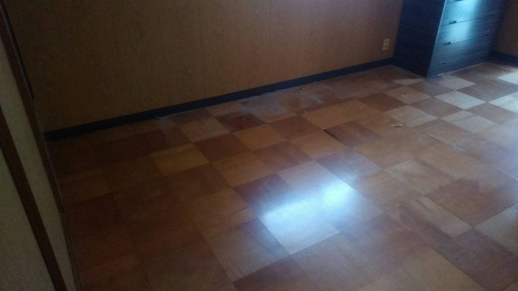 と、ここで終わらず、雨漏りしていない部屋ですが、フローリングが古くなっているのでついでにと言う事で、作業をさせて頂きました。