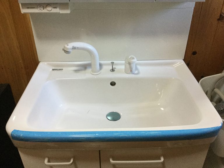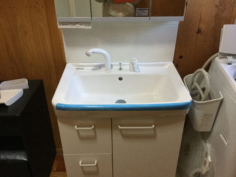 鏡の部分は交換されたばかりでしたので、化粧台のみの交換をご提案致しました。