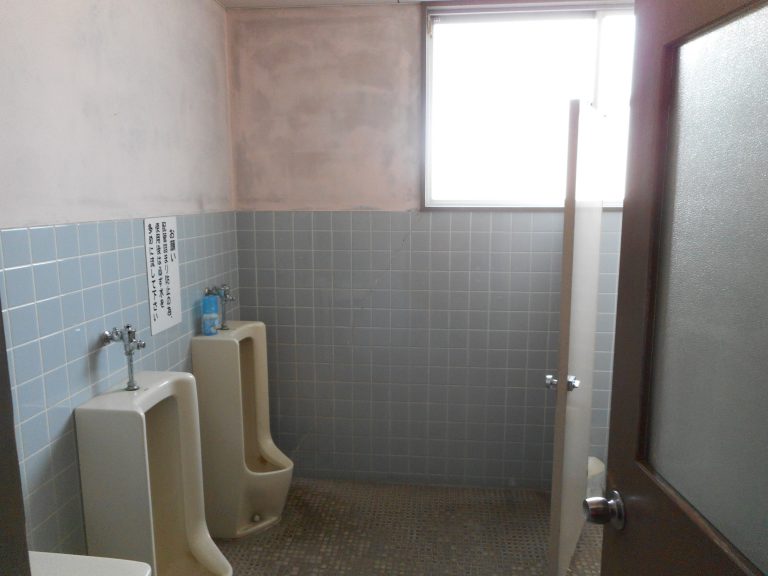 この不便さを解消するべく男子小便器1台、洋式大便器1台、洋式女子大便器1台を設置し、男女の境界線を壁で完全にシャットアウトしました。また、女性用には、擬音装置も着けさせて頂きました。