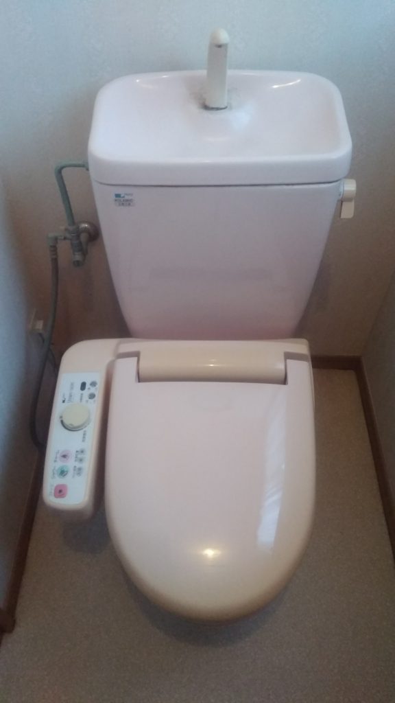 今までは、ウオッシュレットのリモコンが、便器と一体の為に、邪魔で壁付リモコンをとのご希望でしたので、TOTO製の便器&タンクと壁付リモコンのウォッシュレットに交換させて頂きました。