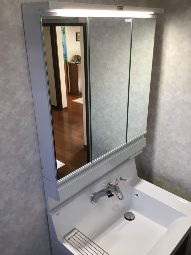 宮崎市の洗面化粧台リフォーム 「3面鏡で収納も大満足」