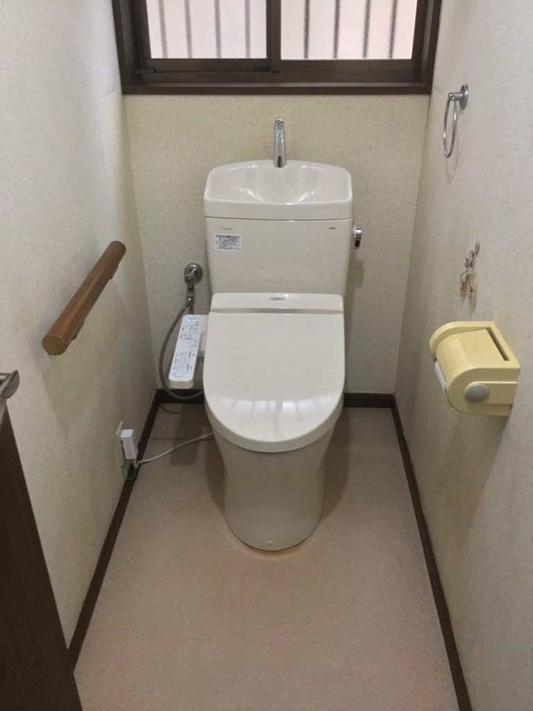 着いていないので、1Fのウオッシュレットを2Fへ、1Fの便器をTOTO製に交換させて頂き