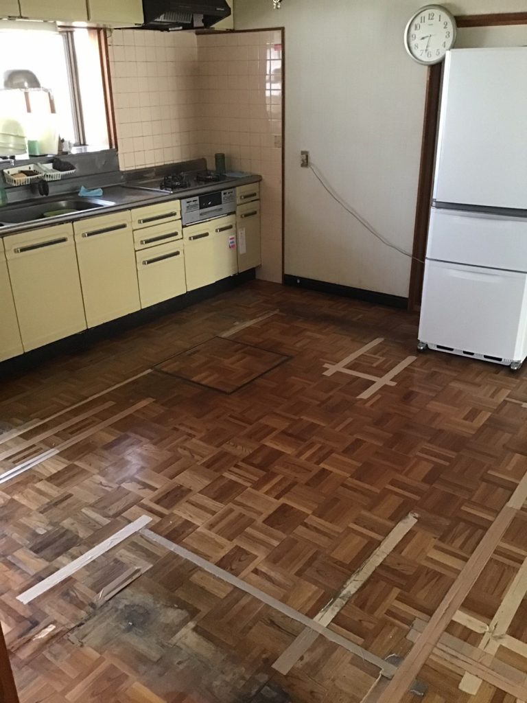 しっかりしていましたので、桜フローリング、合板フローリングでの上張りでご提案させ