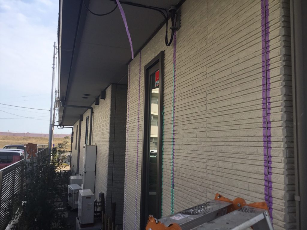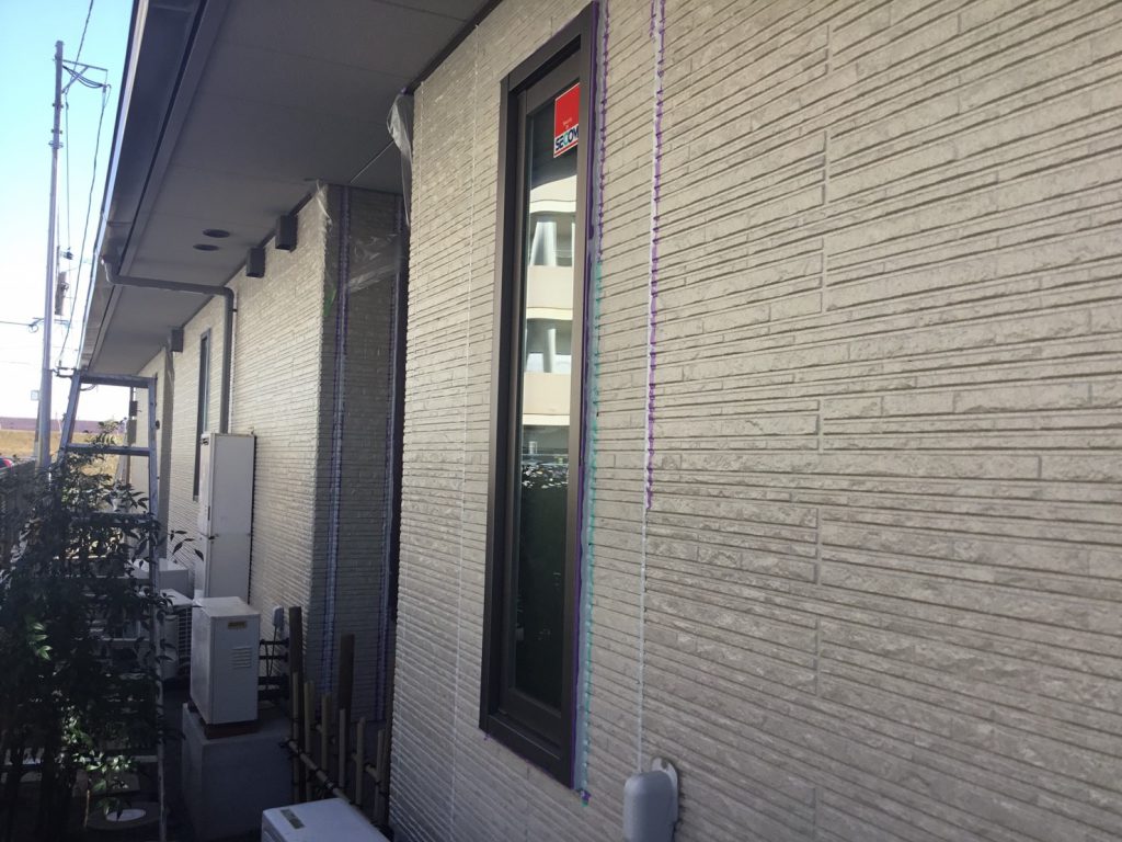コーキングを全て剥ぎ取り、打ち直しをしまして、塗装を行いました。