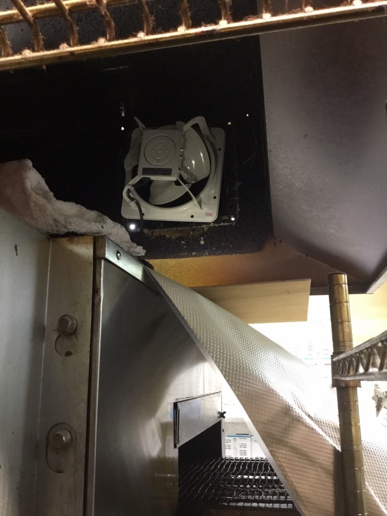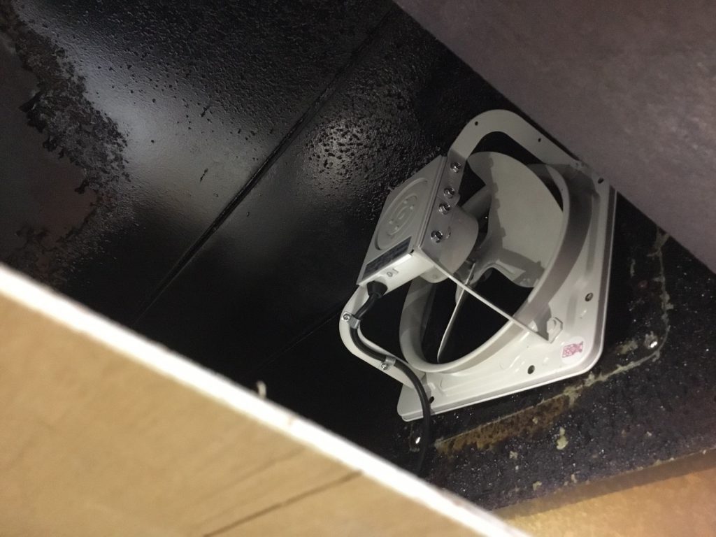 3基ある内の1基の業務用換気扇が故障した為、厨房内は、煙が充満し作業をするのにも一