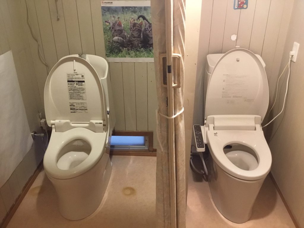 小便器の配管を大便器用にしまして、LIXIL製とTOTO製の便器に取替させて頂きました。