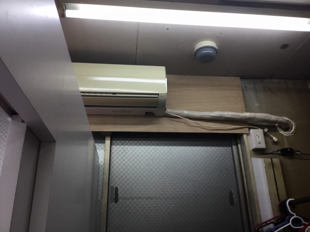 窓枠に背板を新設で作り、エアコンを取付させて頂きました。