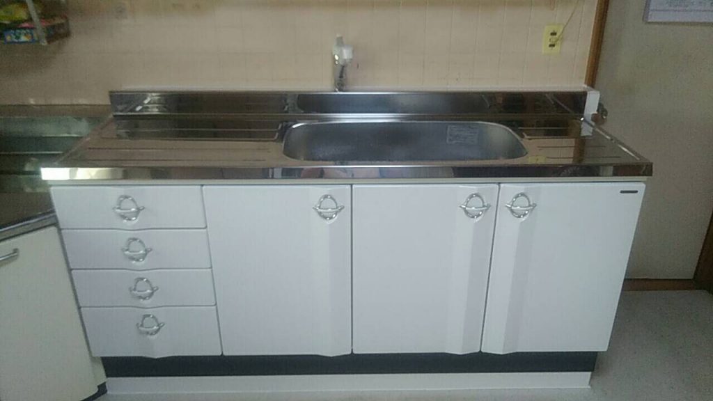 TAKARA製の流し台+台座を10㎝高く加工しまして、取替をさせて頂きました。