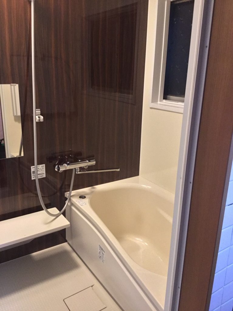 浴室内は、外に出る扉を無くし、冬でも床が暖かいユニットバスへ入替させて頂きました。