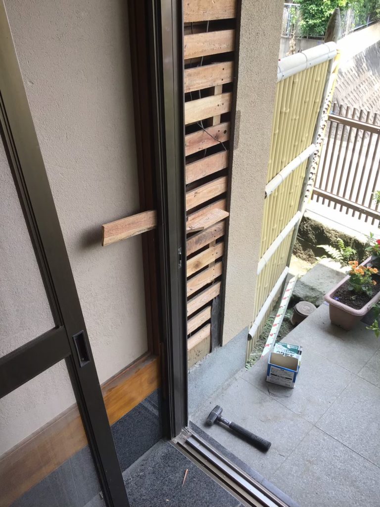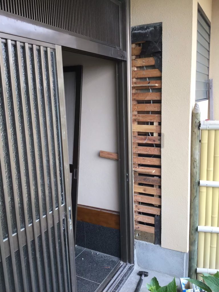 宮崎市の玄関引き戸修正 「サッシ交換で戸締りも安心!」