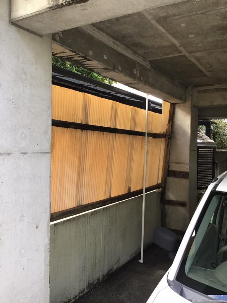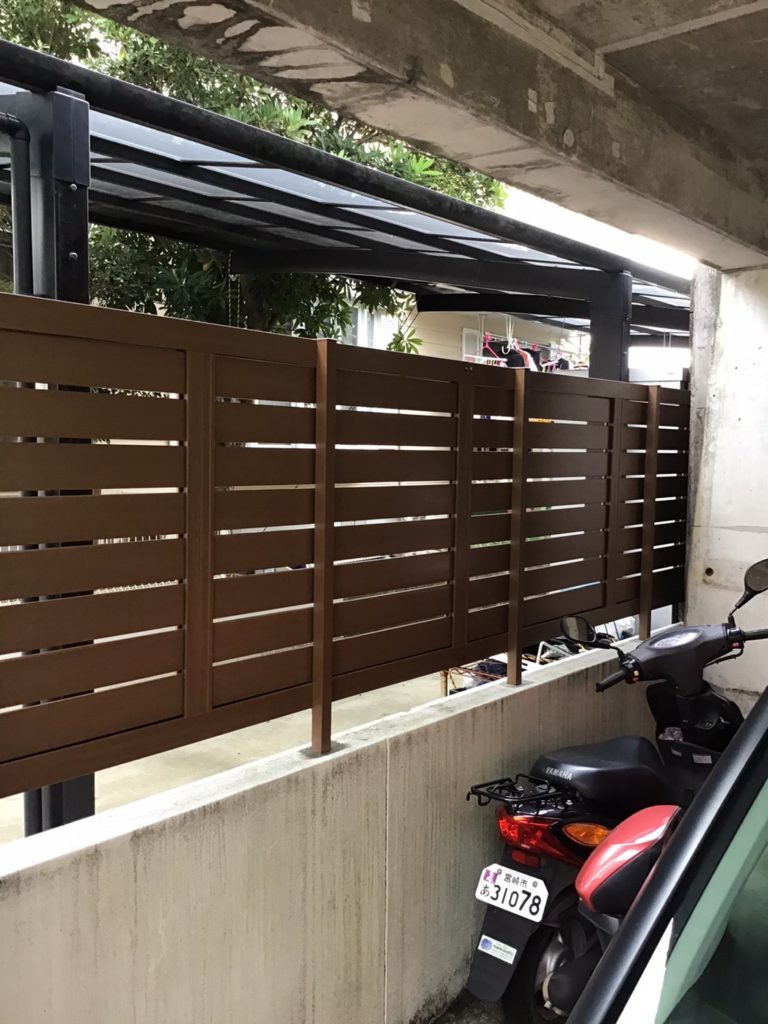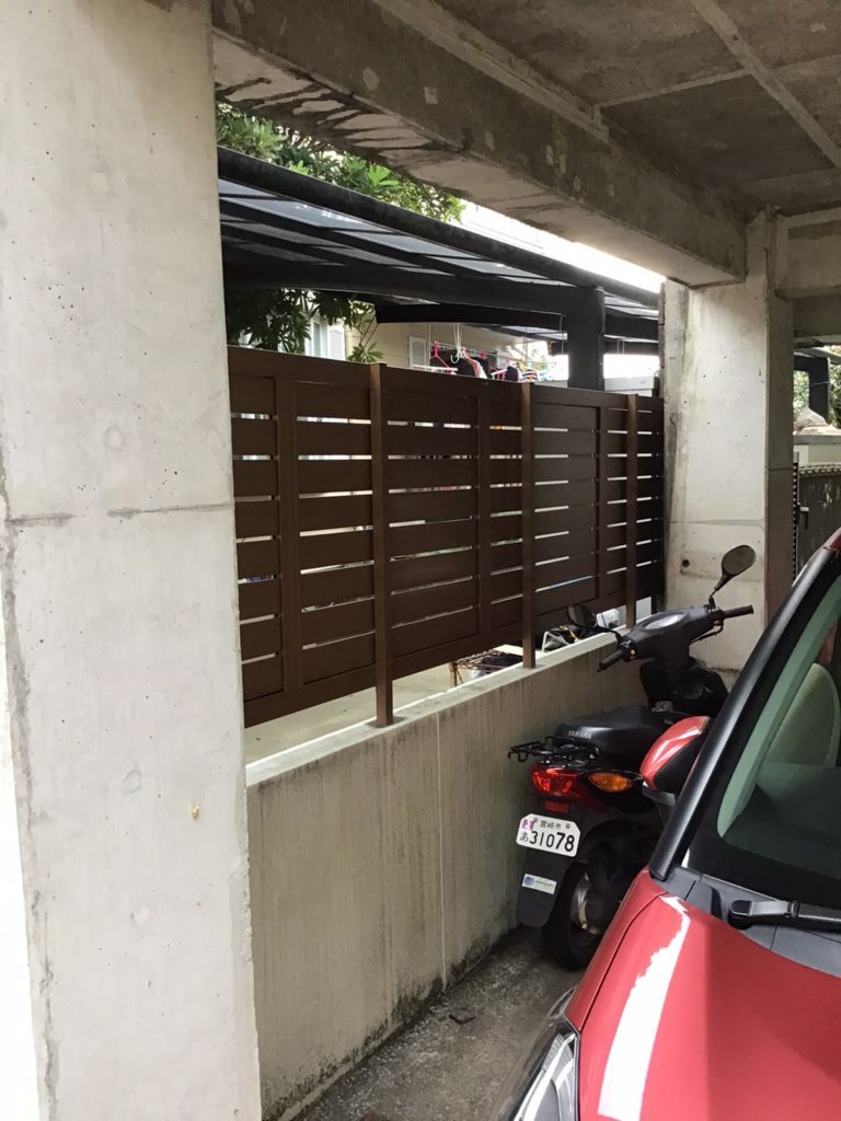今までは、波板で隠していて、風が吹くと音が気になりましたが、今度からは大丈夫です。