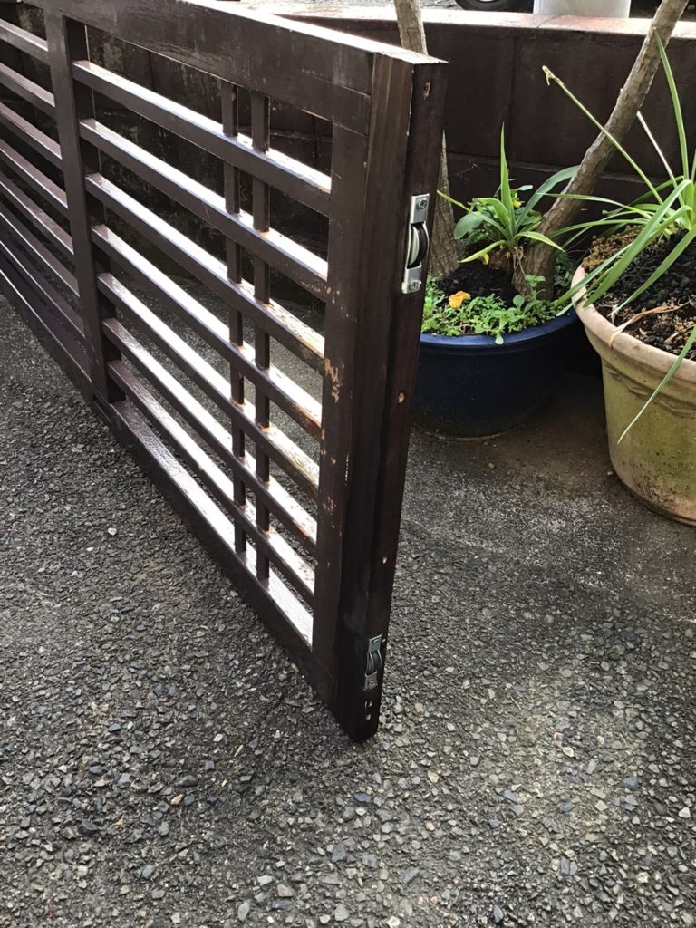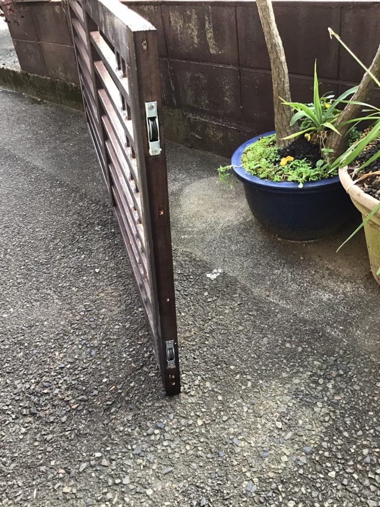 下部の木、戸車が痛んでおり開け閉めが大変でしたが、補修しましたので楽になります。