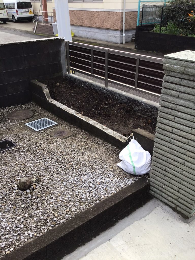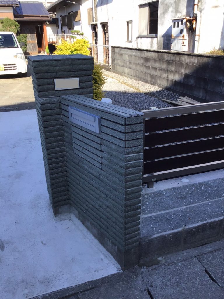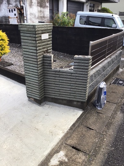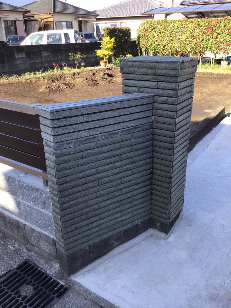 宮崎市の外構工事 「生垣伐根し、門柱タイルも補修しました」