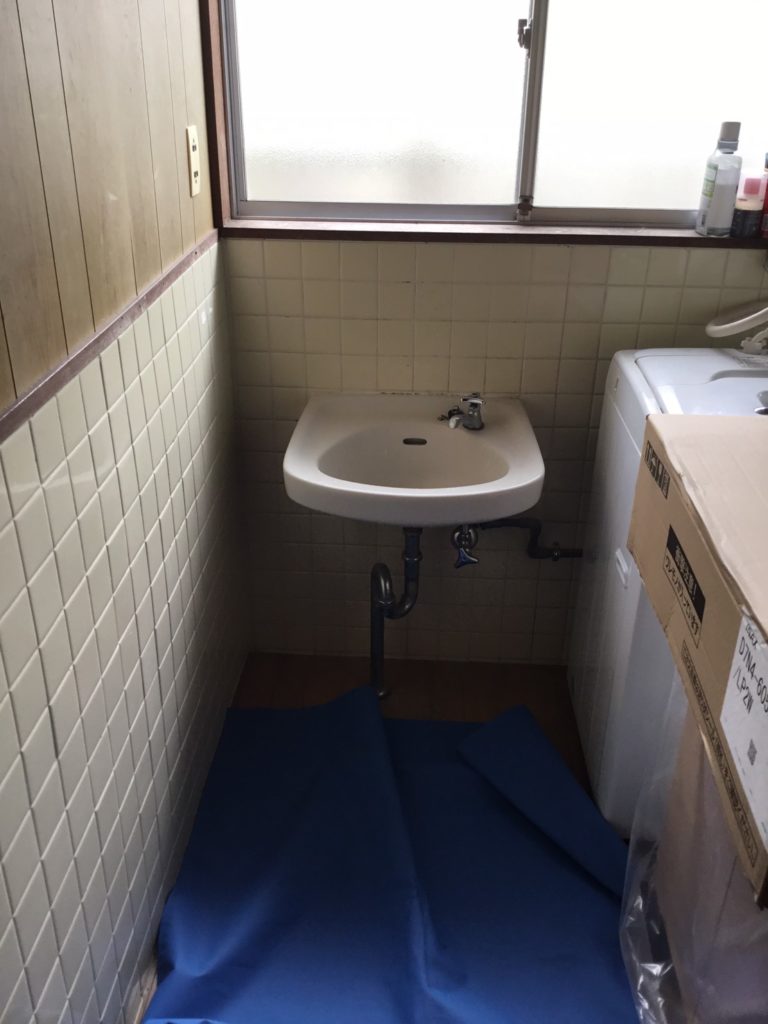現在、お湯が使えなくて、寒い時期が大変との事でした。お湯が出れる様にして欲しい、鏡が付いて欲しいとの事でしたので、リクシル製D7をご提案、取付させて頂きました。