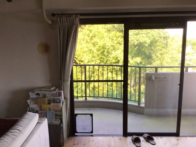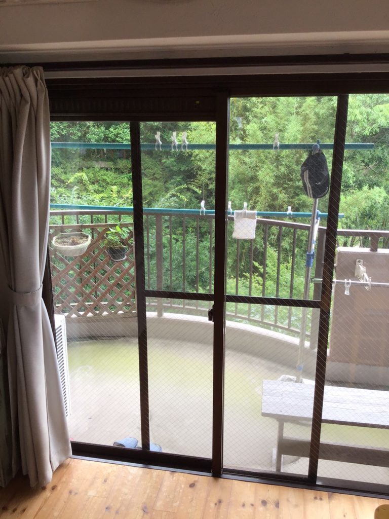 さらに、ペット専用の出入口網戸を付けたいとの事でしたので、一緒に取付まで行いました。