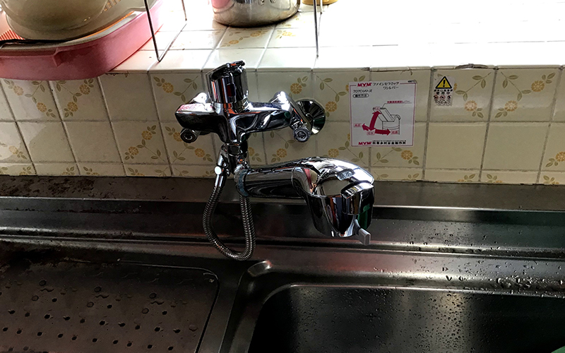 宮崎市の水栓交換 「浄水器一体型の水栓です」