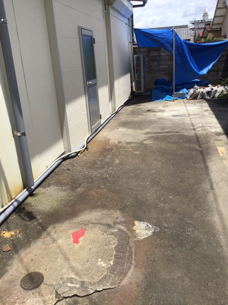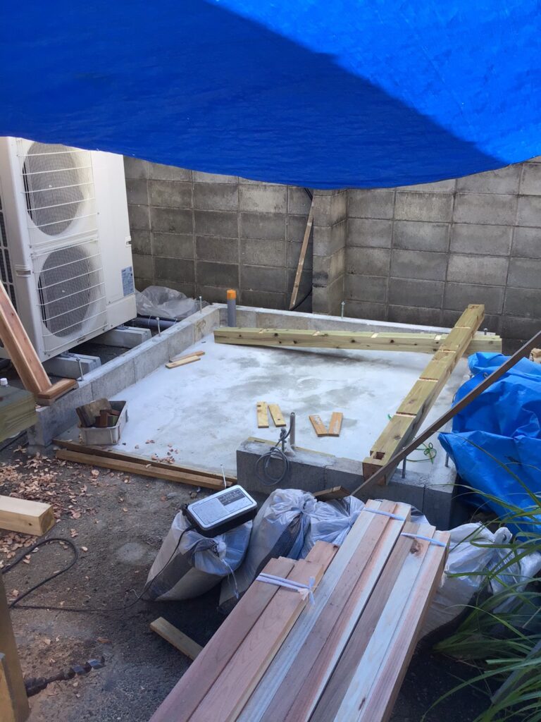 屋外に洗濯機置き場を設置したいとご希望しておりました。給水、排水も新設し作っていきました。ちょっとした洗濯物が干せるスペースもあります。