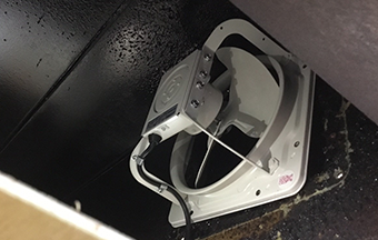プロペラファンとは中⼼のモーターの周りに4~6枚の羽根が付いている換気扇です。⾒た⽬は扇⾵機に似ていて、ダクトを通さずに直接屋外に排気をします。屋外に⾯した壁にしか取り付けられないため、主に戸建住宅に取り付けられています。