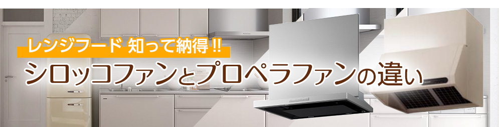 レンジフードと呼ばれることが多い「シロッコファンタイプ」と換気扇と呼ばれることが多い「プロペラファンタイプ」についてご紹介します。