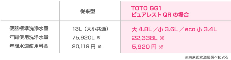 4人家族で使用した場合年間使用日数:365日 家族4人(男性2人、女性2人) 大1回/日・人、小3回/日・人