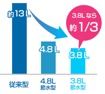 最新の節水型トイレは洗浄水量が従来の1/3程度