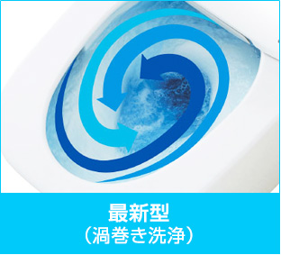 トイレの水流が「縦」から「渦巻き」に変わり、便器素材の防汚性能の向上で、最新トイレは少ない水でも便器の汚れもきちんと流せるようになりました。